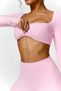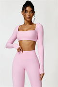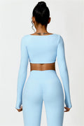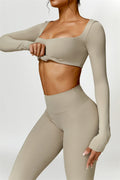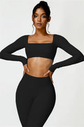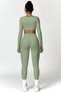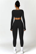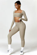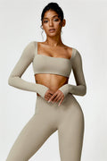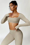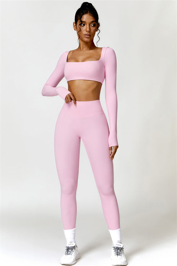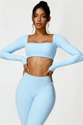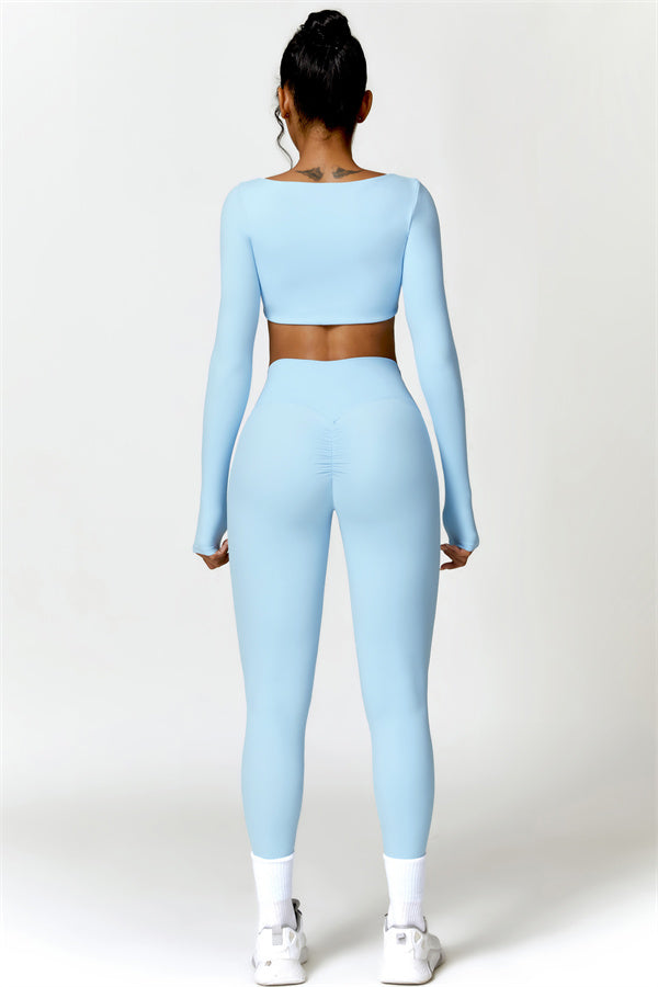 This matching set features a long-sleeve, cropped top designed to accentuate your waistline while providing a sleek and flattering fit. The top’s seamless construction ensures smooth, unrestricted movement for any activity, allowing you to stay comfortable and stylish throughout your workout.