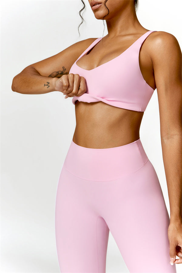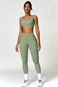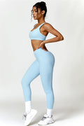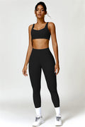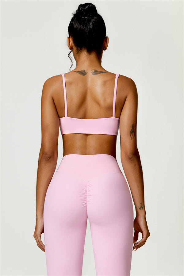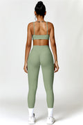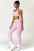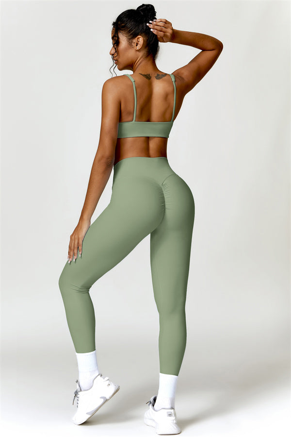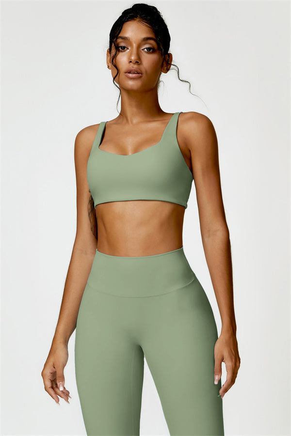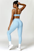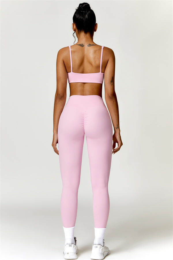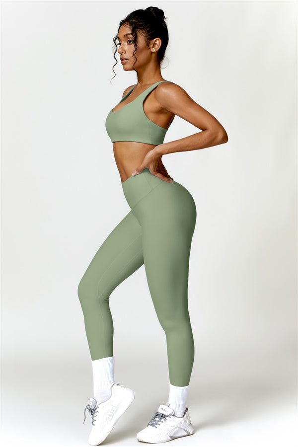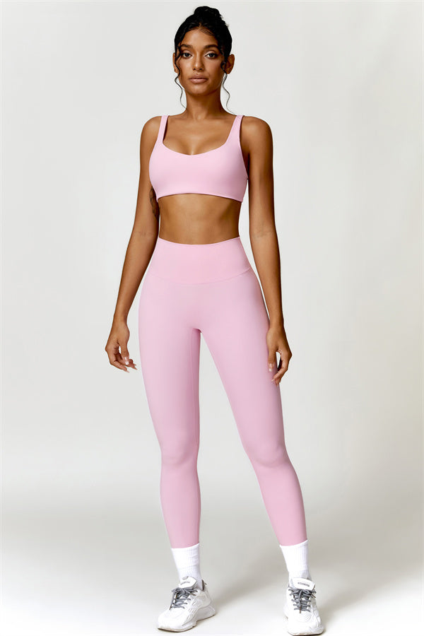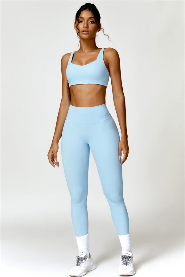 This matching set, featuring a sports bra and leggings, combines style, comfort, and performance for your active lifestyle. The sports bra is designed with a charming sweetheart neckline that beautifully enhances the natural curves of your neck and chest. It features advanced waist-locking technology to prevent rolling and ensure a secure fit during any workout.