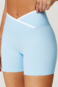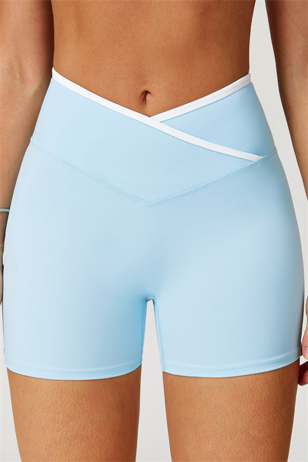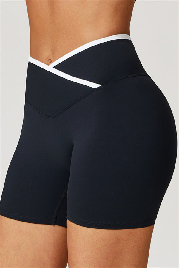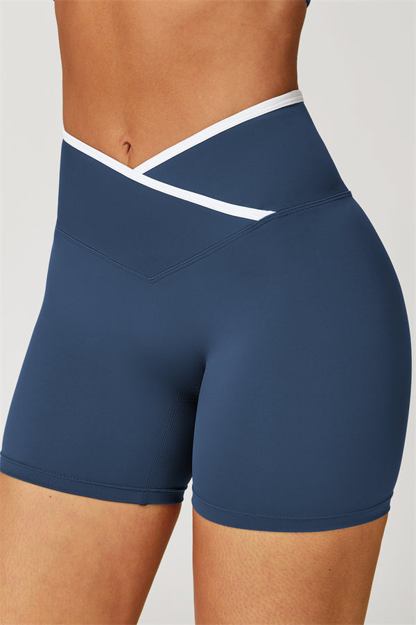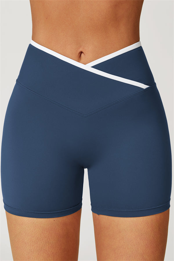 • Crossover waistband for a secure, no-roll fit