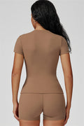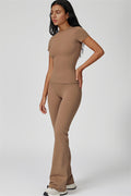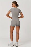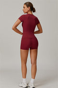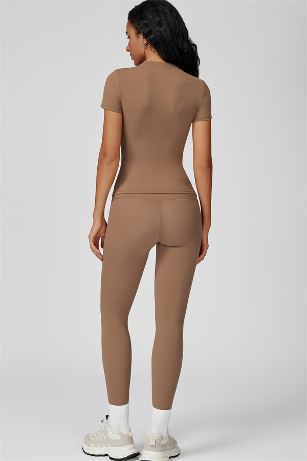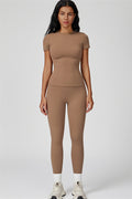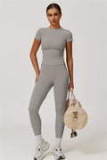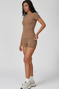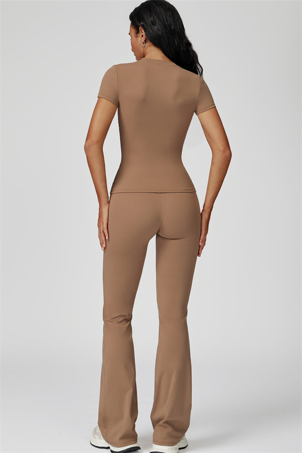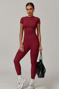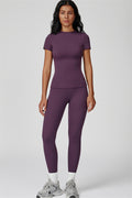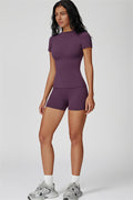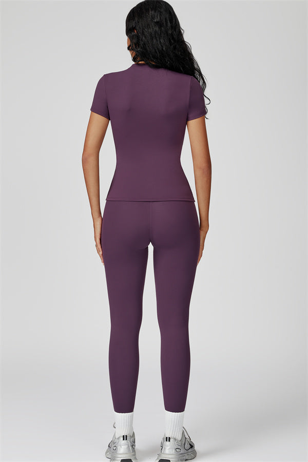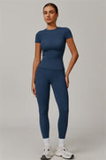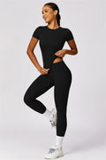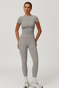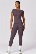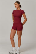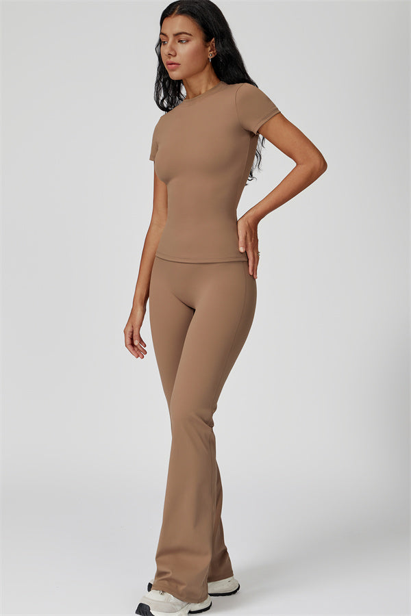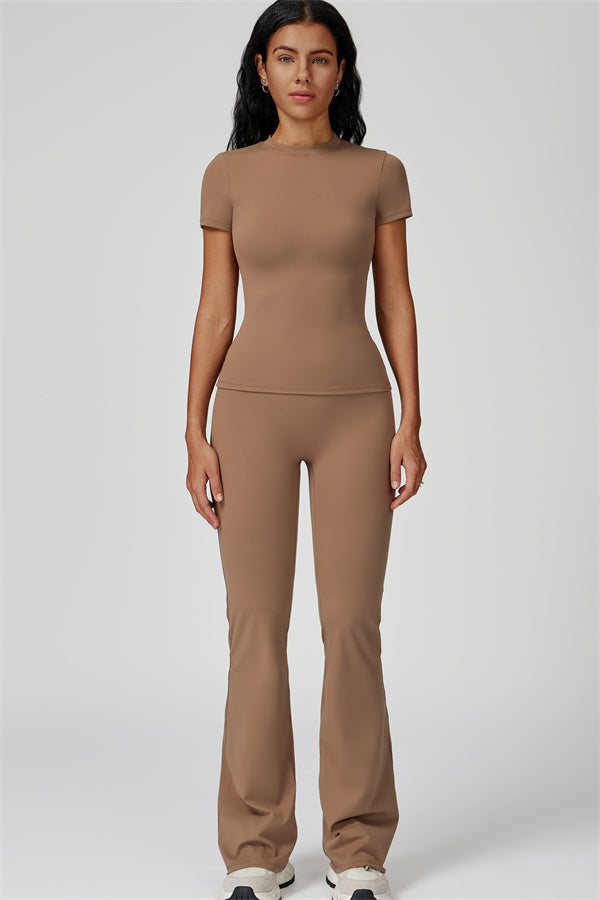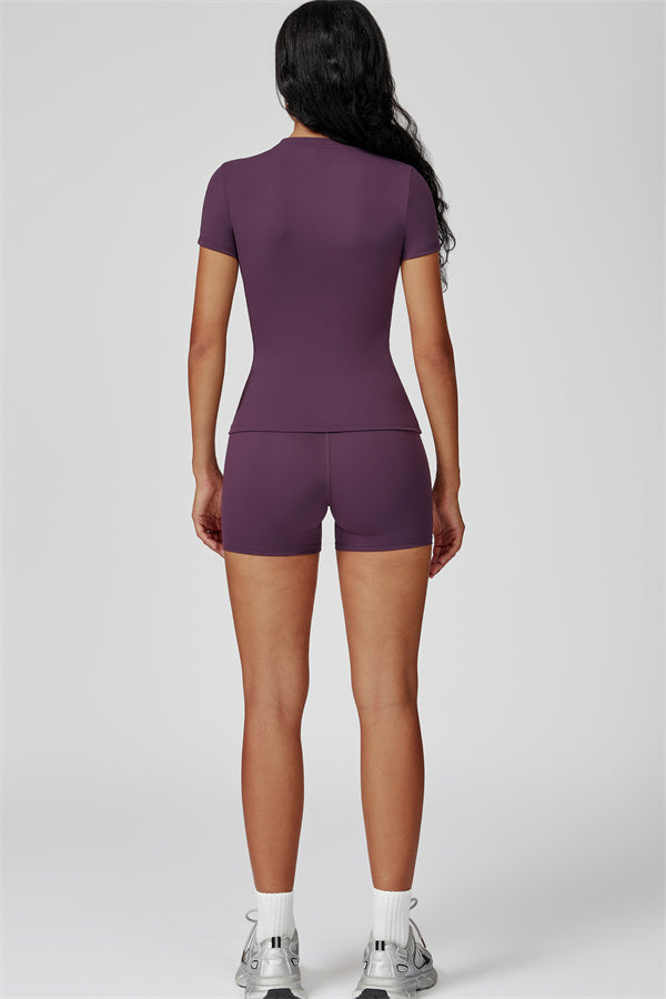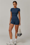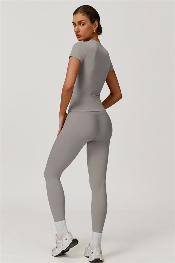 Achieve effortless style and comfort with this classic T-shirt, perfect for workouts or casual wear. The timeless round neckline highlights your natural shape, creating a flattering and sculpted look. Designed with a slim-fit silhouette and extended hem, it hugs your body for a secure and supportive feel.