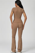 The fabric is super comfortable and has just the right amount of compression — it holds everything in place without feeling tight. The sports bra gives great support, even for more intense workouts, and the high-waisted shorts help shape the waist and keep everything smooth.