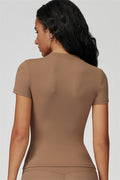 The lightweight fabric, made from recycled 78% recycled nylon and 22% spandex, ensures breathability, flexibility, and durability. Its smooth, brushed finish offers a soft, skin-friendly touch, while the gentle compression enhances your figure, tucks in your waist, and subtly conceals the midsection. Elevate your activewear collection with this versatile and chic T-shirt.